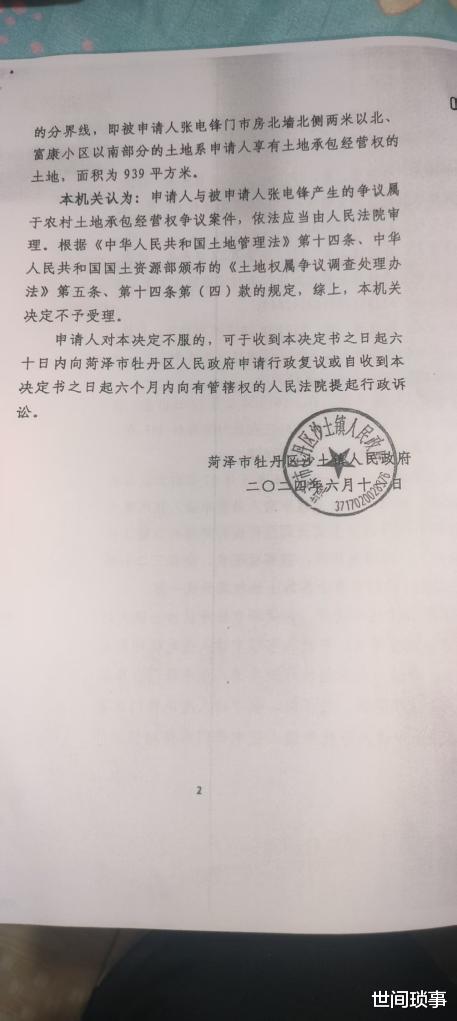 在张桂芳诉张电锋侵权责任纠纷(2020)鲁1702民初2533号判决书已认定原告证据张桂芳及其弟弟张电军和家人位于沙土中心卫生院西的土地于2012年5月被菏泽市牡丹区沙土镇政府租赁用于富康新村建设,原告不能证实其全家土地为9.72亩, 随后,沙土镇政府未组织实地勘测,仅依据当地村委会证明,于2024年6月出具《不予受理决定书》,认定案涉939平方(约1.4亩)土地为张桂芳、许先红、张福祥享有承包经营权,该决定书随后成为张桂芳以土地租赁合同纠纷再次起诉的核心证据。