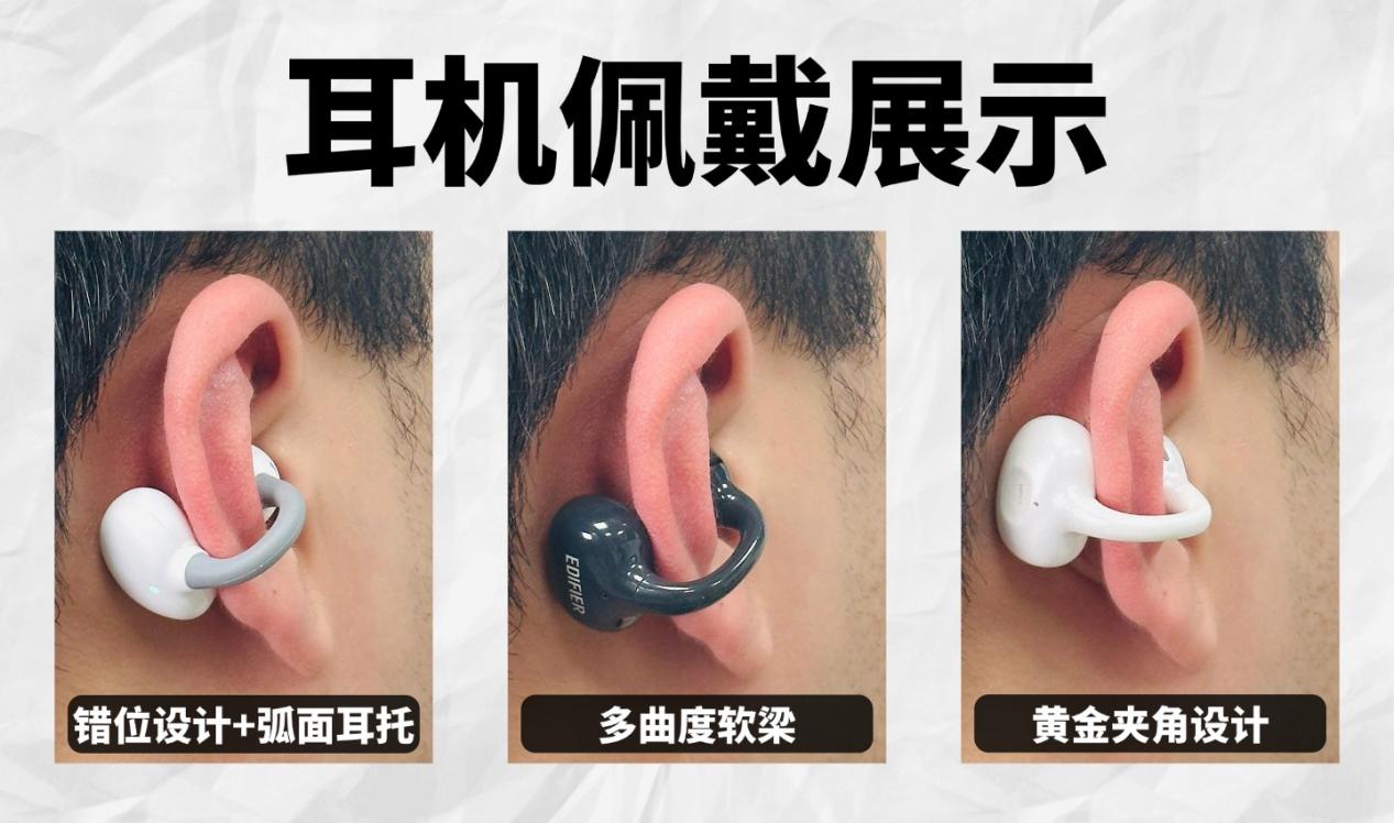 耳夹式耳机主打的就是舒适、健康、“无压感聆听”,佩戴设计直接影响适配度与日常使用体验。不同耳型、佩戴习惯的用户,对耳机形态、重量分布、亲肤材质需求各异,有条件的小伙伴建议线下或是购买回来实际体验感受一下。