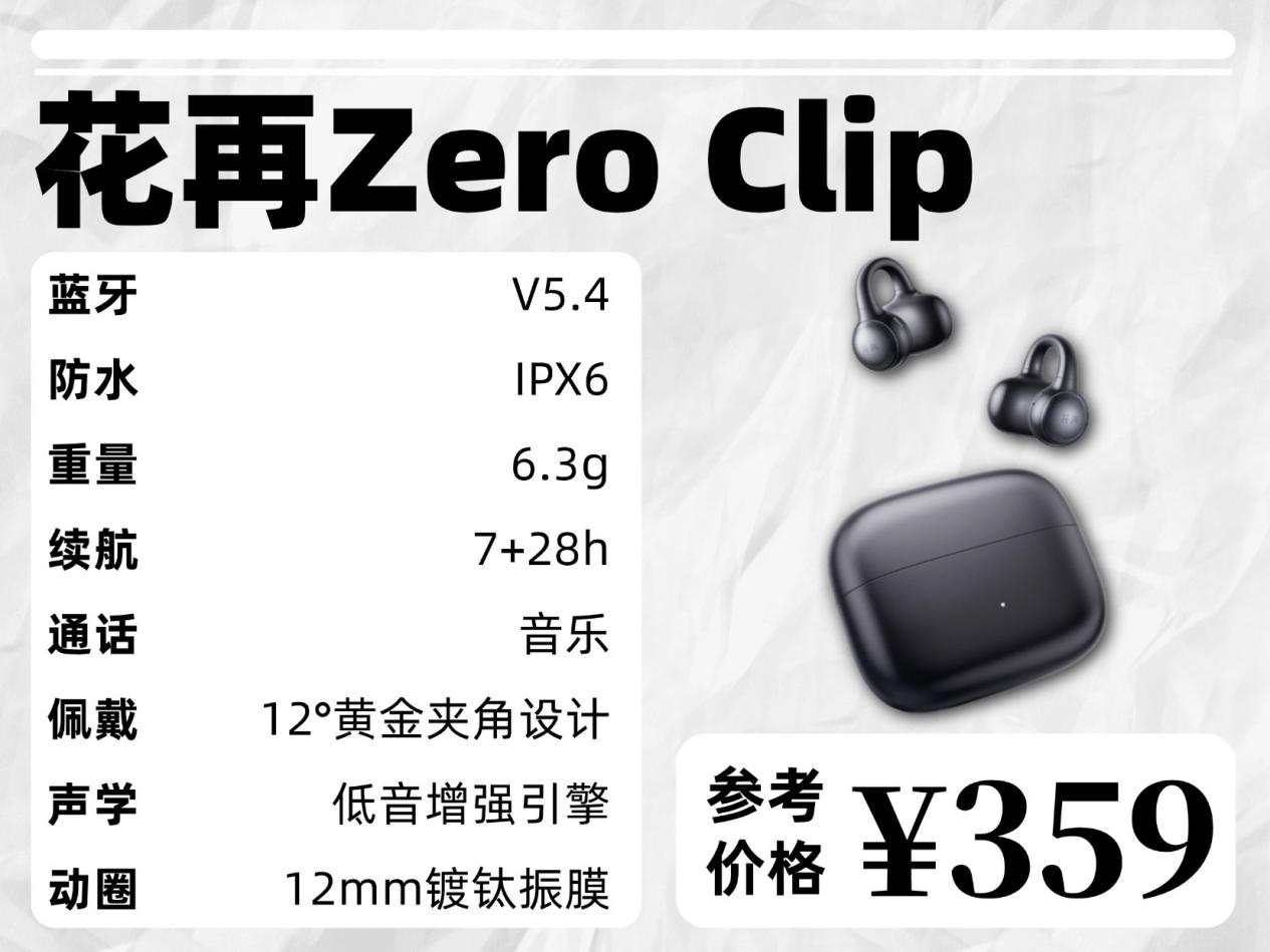 可面对市面上繁多的品牌与机型,很多人都不知道该怎么选。所以今天,我就带来三款不同价位耳夹式耳机的真实实测对比,给大家一个直观参考,分别是虹觅小云夹、漫步者 Comfo Clip Q 以及花再 Zero Clip。