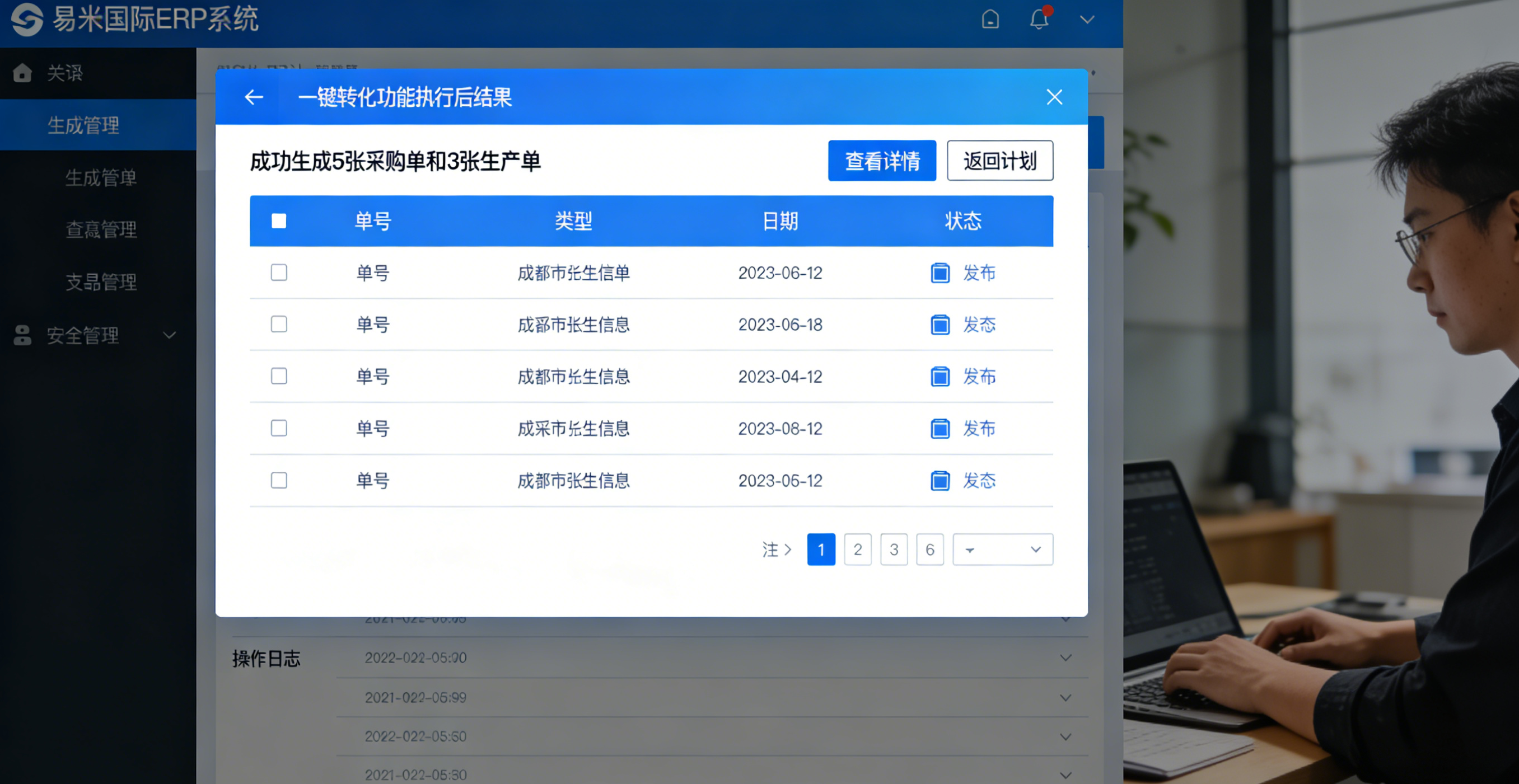 破解这一难题的关键,在于拥有一颗精准的“计划大脑”。易米国际ERP内置的智能物料需求计划(MRP)模块,正是为此而生。它以销售订单与预测为源头,基于精准的物料清单(BOM)和实时更新的库存数据,通盘考虑现有库存、在途采购、安全库存及物料采购/生产提前期等复杂因素,通过强大的计算引擎,自动回答制造业的三个核心问题:需要什么?需要多少?什么时候需要?