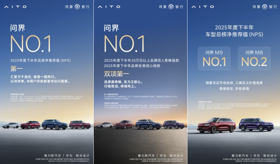 近日,杰兰路发布《2025年度下半年新能源汽车品牌健康度研究》报告。报告显示,问界荣获品牌NPS(净推荐值)第一、品牌发