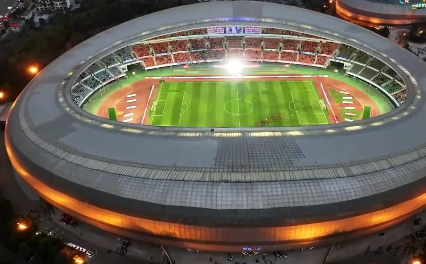 昨晚看滇超直播,曲靖文体公园体育场的夜景航拍镜头一出来,瞬间被这座球场的颜值折服!环形场馆在夜色里被暖黄与蓝紫灯光勾勒出流畅轮廓,航拍视角下宛如镶嵌在城市中的璀璨宝石,氛围感直接拉满。