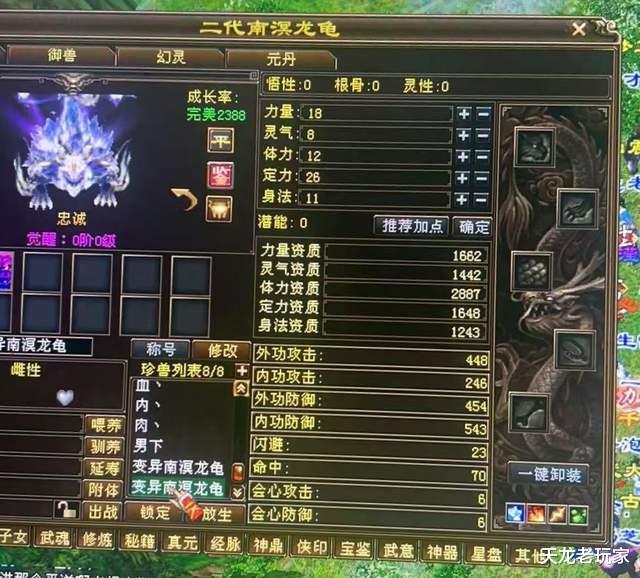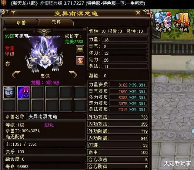 各位老铁,最近年终宝宝“南溟龙龟”也是生疯了!而昨天下午【一生所爱】服务器新鲜出炉了一只2887的大完美极品忠诚南溟龙龟: