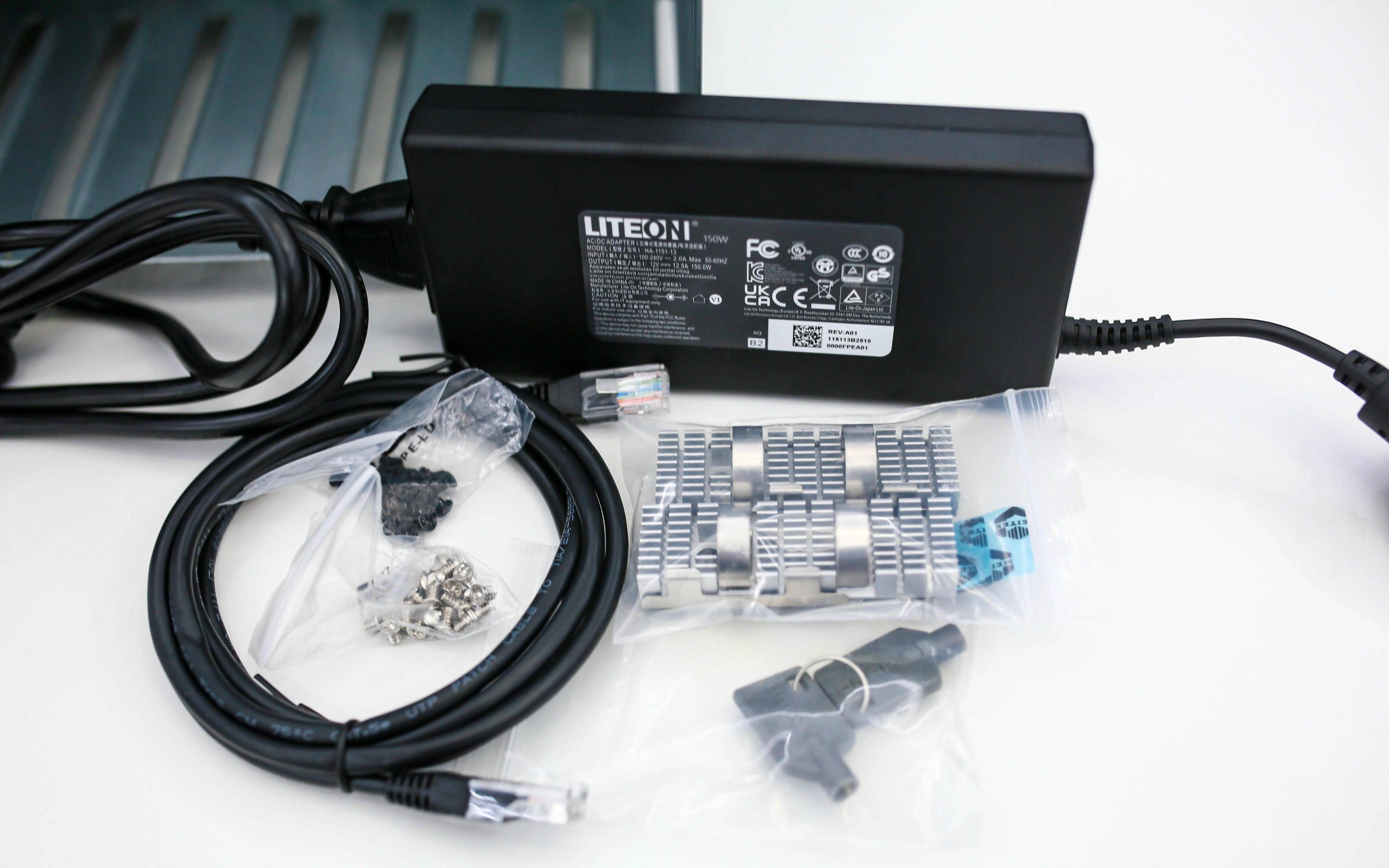 尤其值得一提的是电源部分。官方标配来自知名厂商 LITEON 光宝科技 的 12V 12.5A DC 电源,最大输出功率高达 150W。这颗电源不仅体积厚实、散热充足,而且具备出色的电压稳定性与过载保护设计。面对多盘位高负载运行的场景,也能提供持续、稳定的功率输出,避免出现掉盘或电压波动问题。
