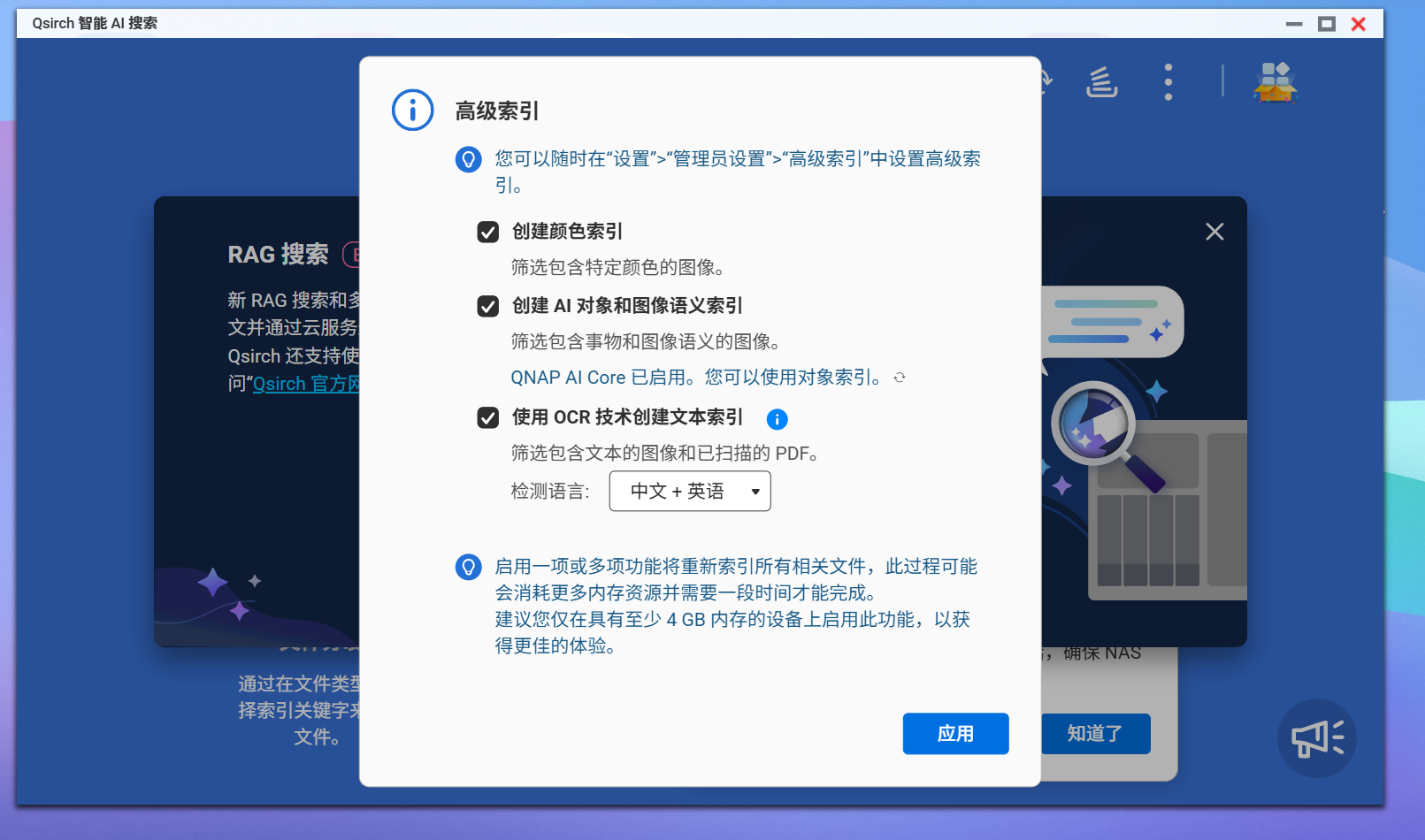 在使用 NAS 的过程中,文件越多越容易陷入“资料找不到”的困境。Qsirch 正是为解决这一痛点而生的,它堪称“NAS 里的百度”,在5.3.3 版本后高级版(Premium)全面免费开放,所有用户都能享受全文搜索、快速预览、智能筛选等完整功能。它还融合了OCR 文本识别 与智能图像识别 技术,可以在海量图片、PDF、邮件、Office 文档中精准匹配关键词,大幅提升资料检索效率。对于内容创作者、企业办公用户来说,这无疑是一项“效率神器”。