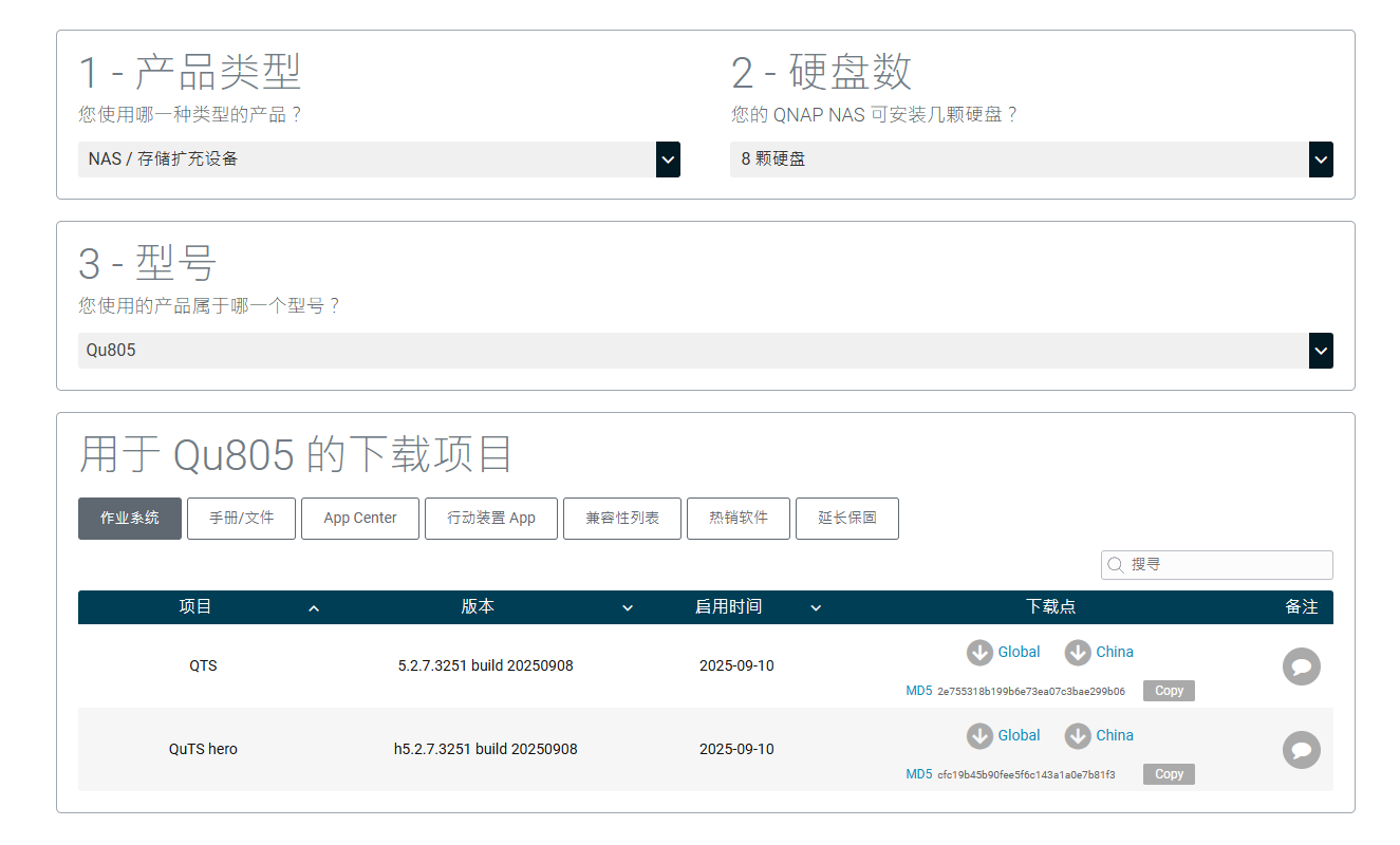 需要注意的是,两套系统的文件结构与功能差异较大,切换系统会清空所有数据与配置。因此,建议在初始化阶段就根据自身需求确定好系统版本——如果追求更强的数据安全与存储效率,可优先选择 QuTS Hero;若注重轻量化与应用生态,则 QTS 会更合适。一次决策到位,后期维护更省心。系统固件可在威联通官网下载,界面操作简单清晰,即使是第一次使用 NAS 的用户也能轻松完成。