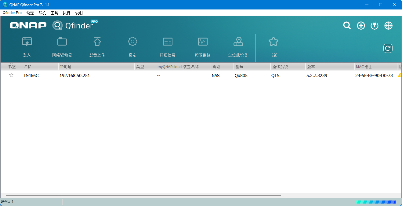 首先介绍一下我现在正在用的设备是威联通 TS-464C,同品牌的数据迁移,十分简单,只要按照顺序装好硬盘就可以了。使用 QNAP 提供的 Qfinder Pro 桌面管理工具,在局域网中可以看到这台新的NAS。安装硬盘一定要记住硬盘的顺序,如果硬盘raid状态下错序放入,通电后基本上数据就没救了。