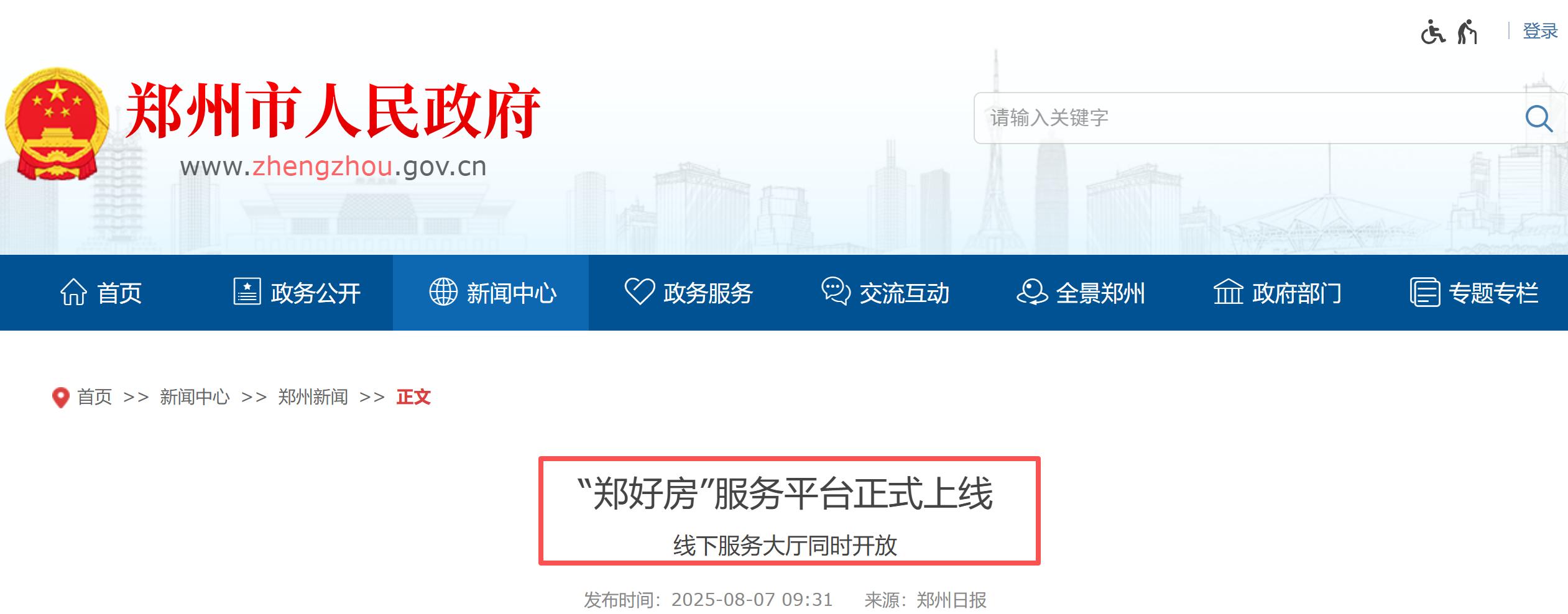 郑州市人民政府-“郑好房”服务平台正式上线;