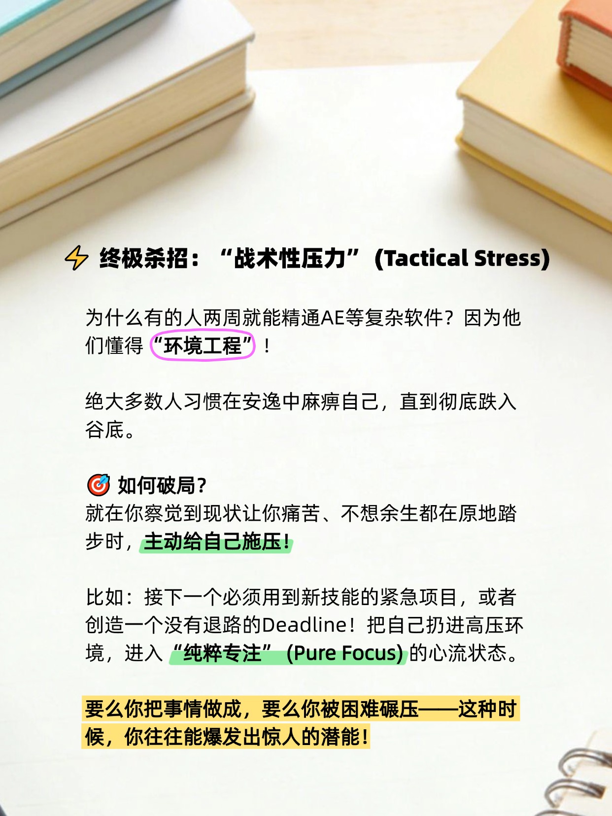 2️⃣ 告别舒适区,人为制造“战术性压力”,不逼自己一把,你永远不知道自己学东西能有多快!