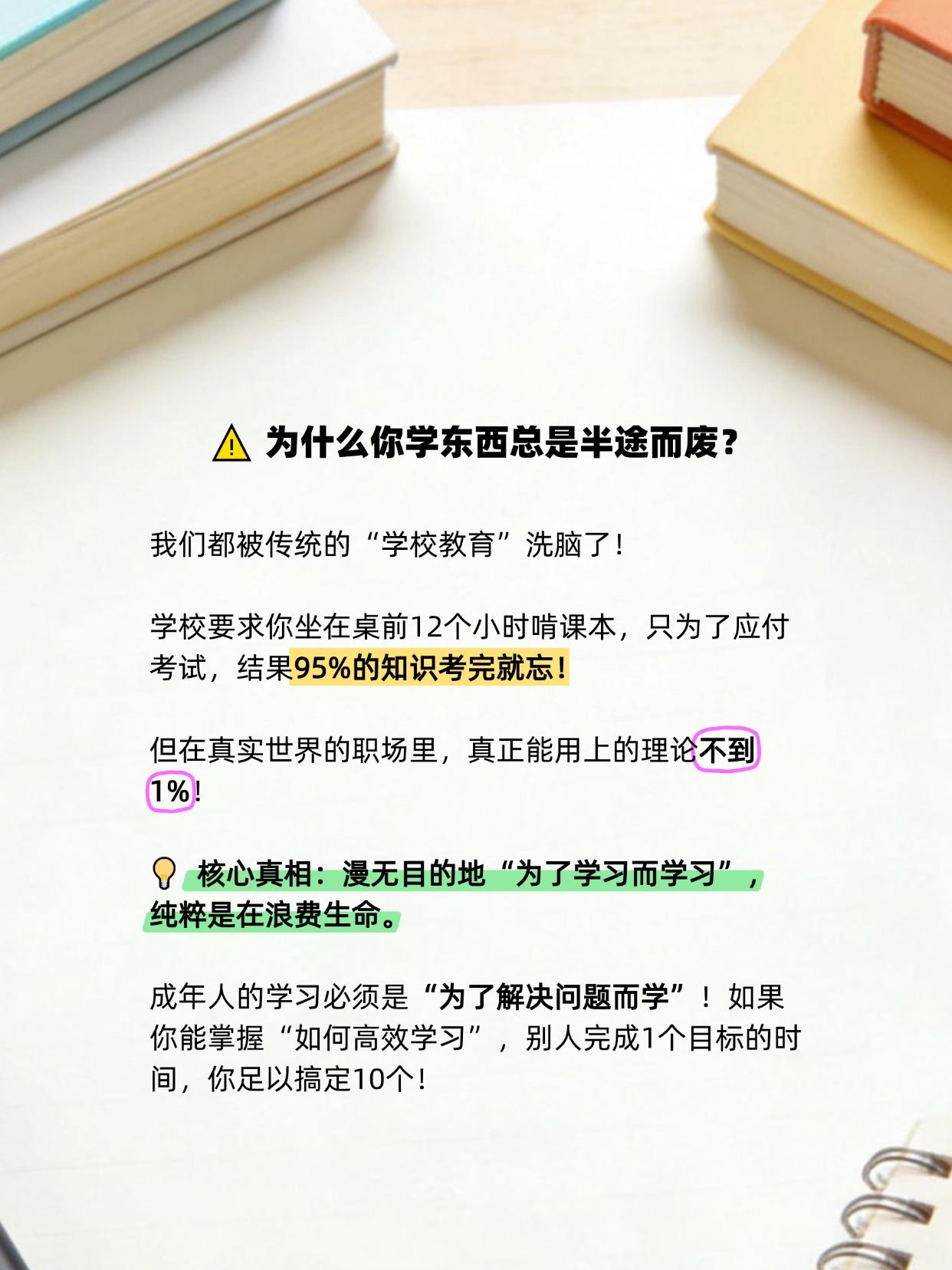 每天都在焦虑自己核心竞争力不够,报了一堆网课却从来没有完整看完过?今天分享的这套干货方法,绝对能颠覆你的学习观。🧠