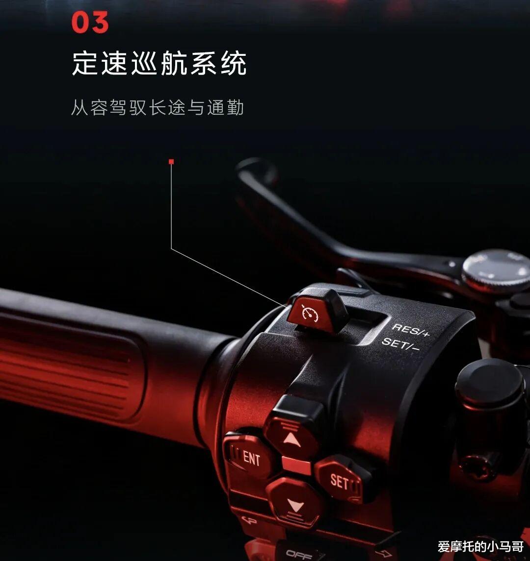 定速巡航功能也给全系配上了,长途高速骑行的时候,能解放右手,不用一直拧着油门,不管是日常通勤还是中短途摩旅,实用性都还不错。
