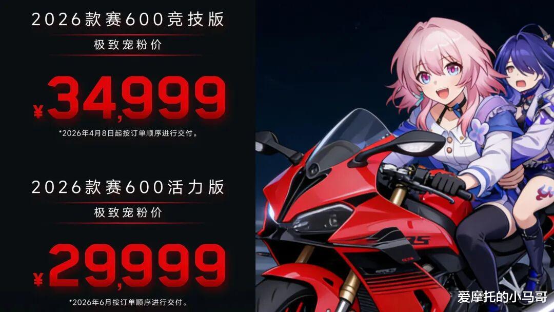 3月29日,2026款 赛600 正式发布,这次新车分两个版本,活力版极致宠粉价 29999元,2026年6月按订单顺序交付;竞技版极致宠粉价34999元,2026 年4月8日起按订单顺序交付。