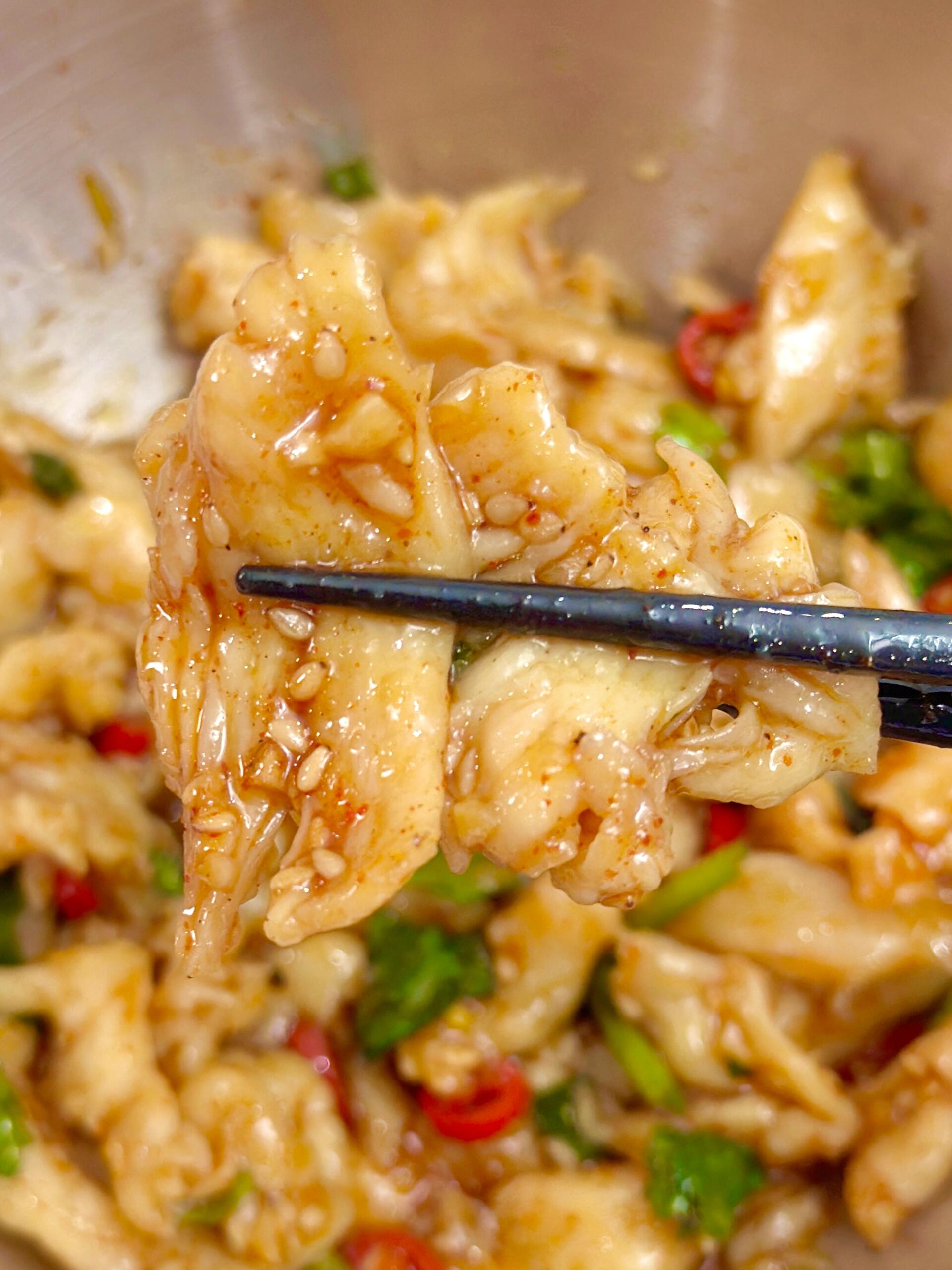在减脂期的餐桌上,鸡胸肉往往是又爱又恨的角色。爱它的低脂高蛋白,却又恨它烹饪稍不注意就变得又柴又硬,难以下咽。但今天要分享的这道酸辣嫩鸡胸,却能彻底颠覆你对鸡胸肉的认知。它完美复刻了轻食店里那种入口即化的嫩滑口感,再配上一碗灵魂酸辣酱汁,酸辣开胃,解馋又掉秤,让人忍不住一口气炫完一大盆。