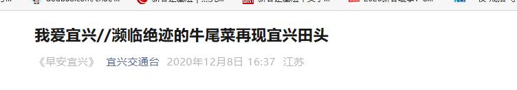 信息来源:宜兴交通台 我爱宜兴//濒临绝迹的牛尾菜再现宜兴田头 2020-12-08