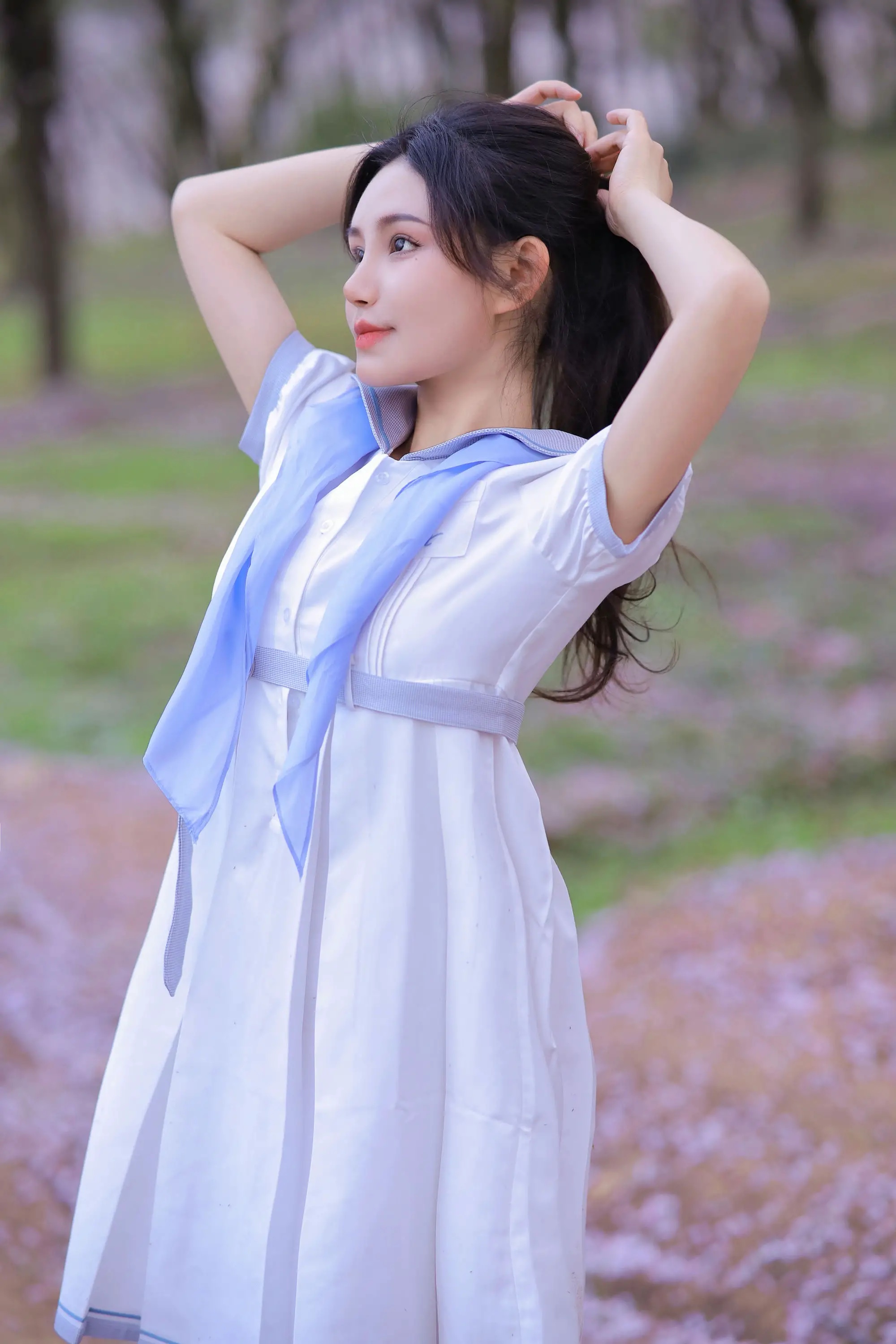 白衬衫被风掀起衣角,马尾辫晃呀晃