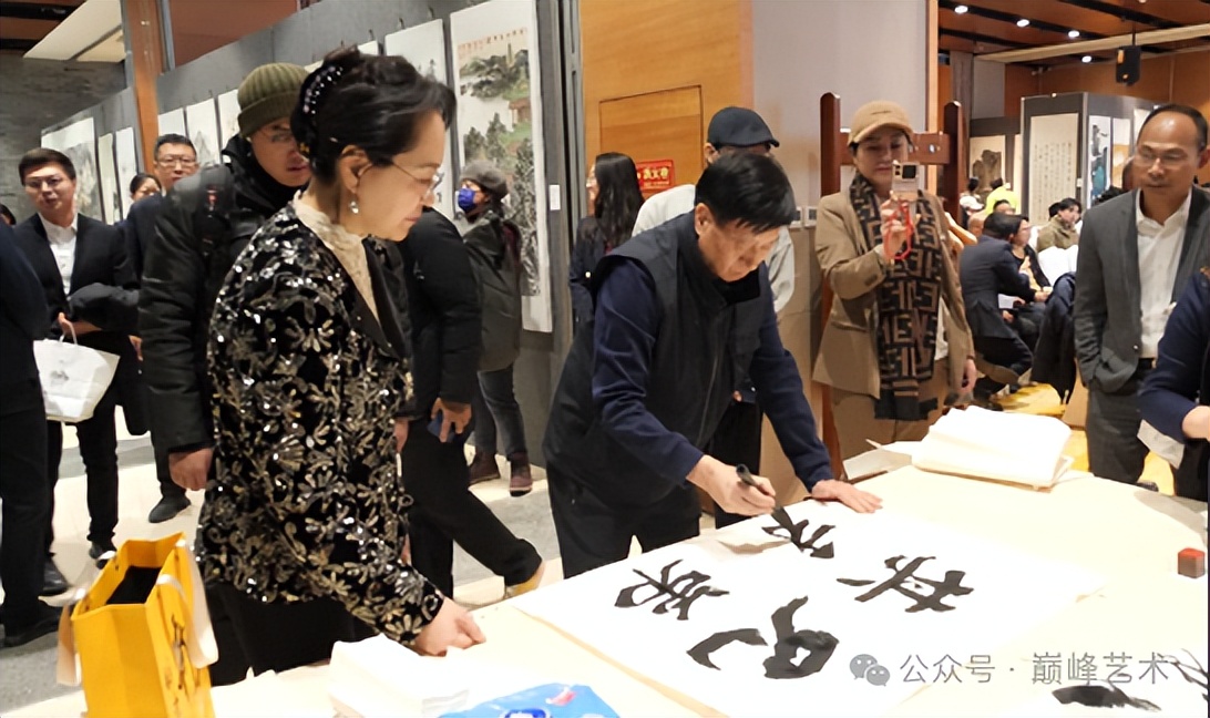 ▼北京五洲和平书画院高级顾问、孔子第74代孙孔繁顺特别为此次书画展赋诗一首,用遒劲的魏碑体书写,并参加了两岸交流笔会: