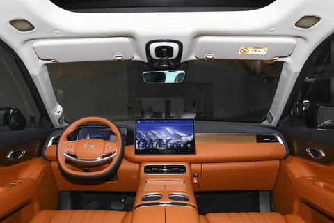 车顶搭载的激光雷达是外观上的一大亮点,它就像车辆的 “感知触角”,为后续的智能辅助驾驶功能提供支持,从细节处体现出车辆的科技属性。车身侧面,悬浮式车顶与隐藏式门把手的组合,既符合当下的时尚审美,又能在行驶中减少风阻,提升车辆的 aerodynamic(空气动力学)表现。21 英寸的轮辋造型独特,转动时能展现出较强的气场,为车辆增添了几分活力。