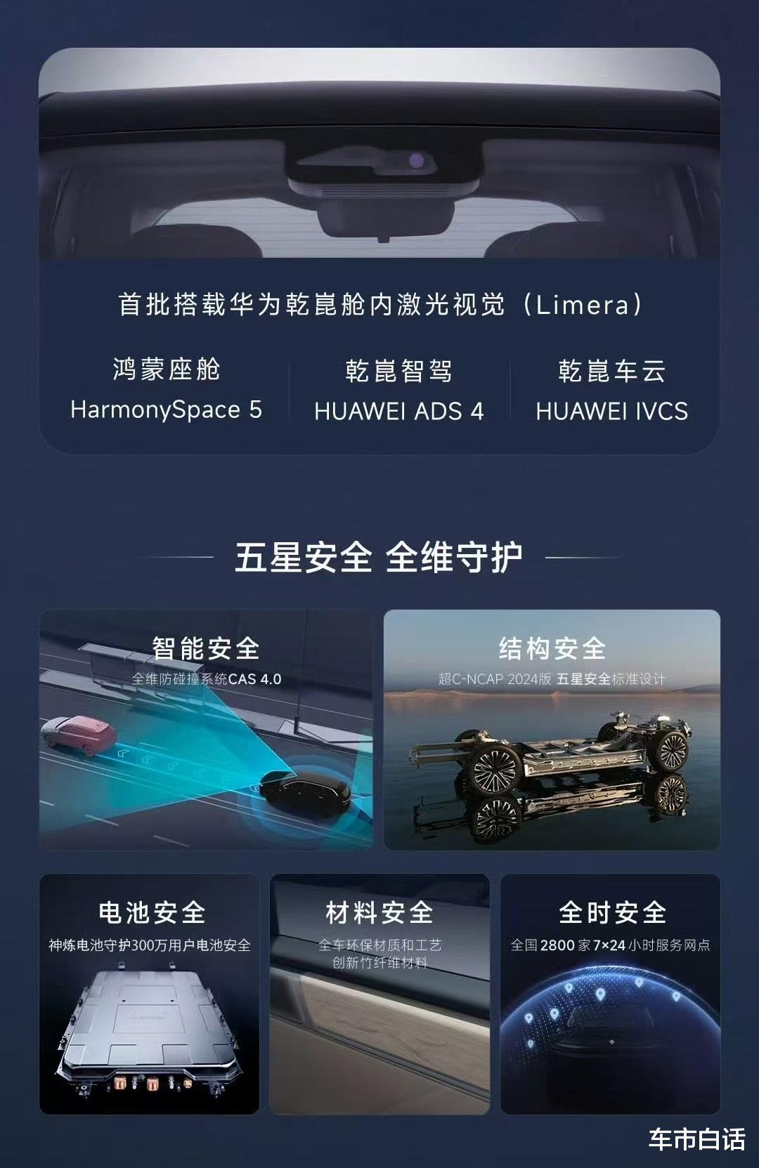 同时,车辆搭载的HarmonySpace 5也是一套比较完整的华为智能座舱系统,尽管它可能无法像问界M9、享界S9这些旗舰那样获得激光巨幕投影2.0、隐私声盾等所谓的“行政级”配置,但在多端智能交互方面,它确实会带来比灵语座舱更出色的体验。无论是在交互流畅度,还是在生态功能丰富性方面,华为的表现还是值得肯定的。此外,由于舱内布局了Limera车规激光雷达,这使得座舱也会实时监测驾驶员状态,并在突发状况下联动智能驾驶辅助系统接管车辆,通过主动变道、靠边刹停以及紧急呼救等措施,来帮助用户应对意外事故的发生,如果这套应对机制真的能保持如官方声称的高效率与精确度,那对咱们的用车安全也是有直接增益的。