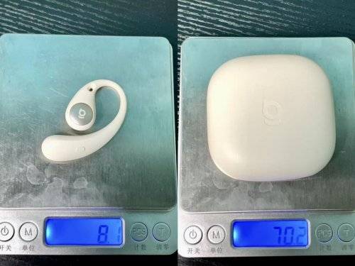 单耳重8g,采用液态硅胶包裹0.68mm超细钛合金丝设计,上耳佩戴柔软自然,长时间戴也不会感觉磨耳朵,耳挂材质亲肤顺滑但支撑略弱,低头时容易轻微滑动。