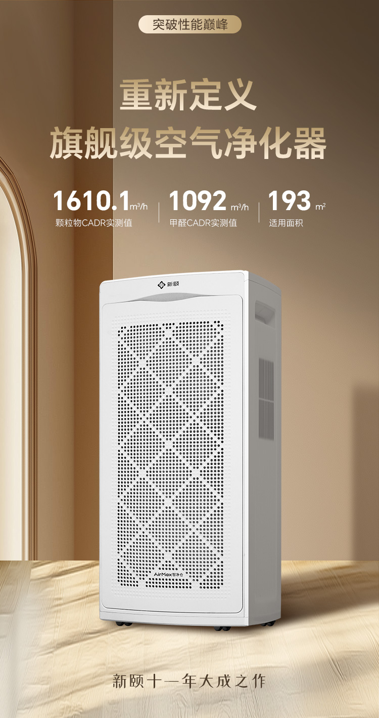 颗粒物 CADR达1610.1m³/h,快速过滤PM2.5、灰尘等,下班回家即刻告别 “灰头土脸” 的空气;