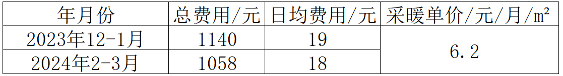 采暖单价=使用费/月/室内面积=(1140+1058)/4/89=6.2元/月/㎡