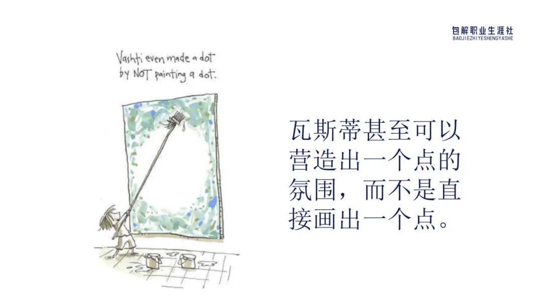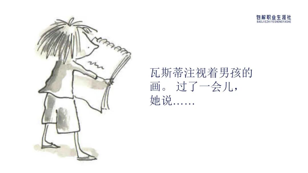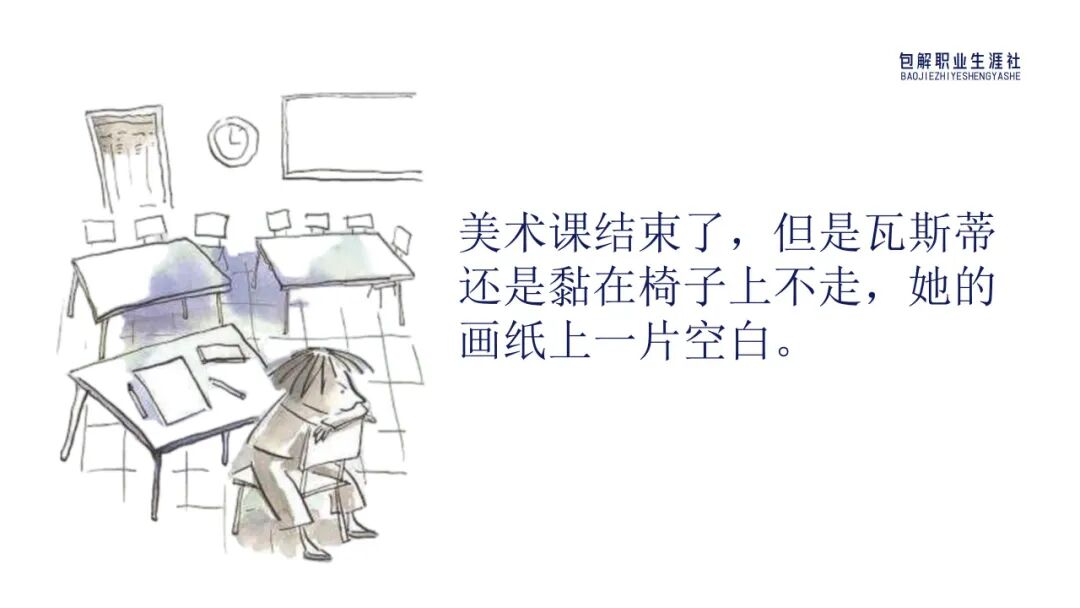 现在我们讲角色转换下,你是瓦斯蒂的话,看到墙上自己的这个作业被镶嵌在镶金边的画框里,并挂在美术教室时,你会是什么感受呢?你会有什么想法呢?