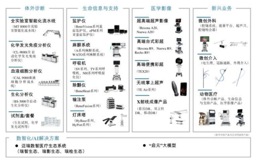 迈瑞医疗主要业务线的产品组合