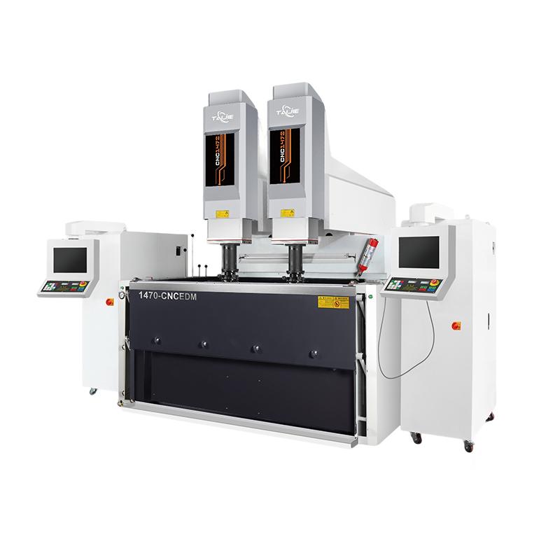 对于中大型模具加工,台捷推出TJ-A540/TJ-A640/TJ-A850系列牛头火花机。这类设备的价值在于解决中大型模具放电加工效率低、重负荷加工时工作台易变形及精度偏差的问题。