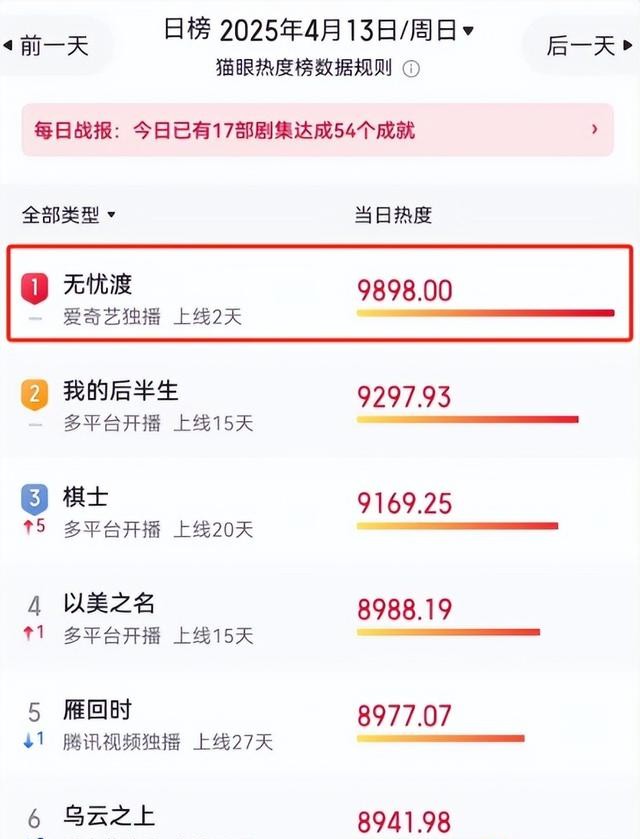 《无忧渡》一经亮相,直接赶超所有同档作品,斩获全网热度冠军,连上星大剧都不在话下。