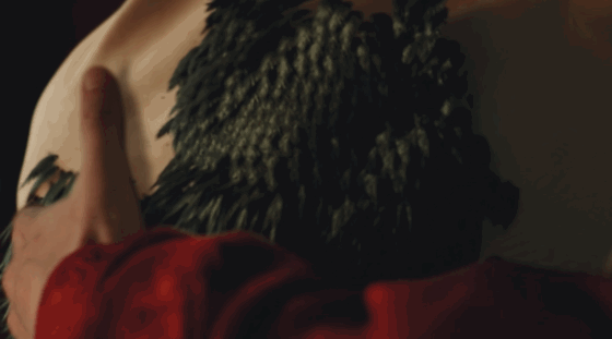两个人吻得情难自禁,女人背后的毛发逐渐显出,尾巴也越来越长。