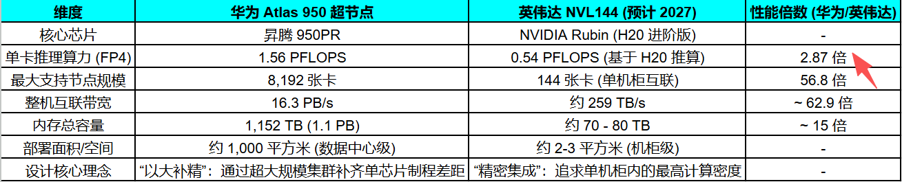 华为昇腾950PR,在低精度推理场景下,单卡算力达到英伟达H20的2.87倍。