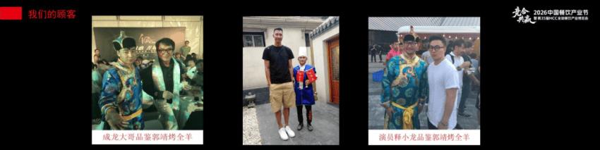 凭借成熟的食材、味道、烤具、技术等,郭靖烤全羊受到不少中高端客户的欢迎,不仅包含成龙、曾志伟等2000多名演艺界的明星,还有阿里巴巴、腾讯、京东等多家500强企业在内的客户。