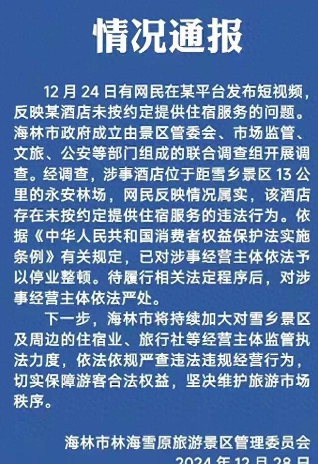 黑龙江海林市官方对涉事酒店的通报和处理结果,体现了对消费者权益保护的重视和对违法行为的零容忍态度。希望通过此次事件,能够引起更多旅游从业者的反思和改进,共同提升旅游行业的服务质量。