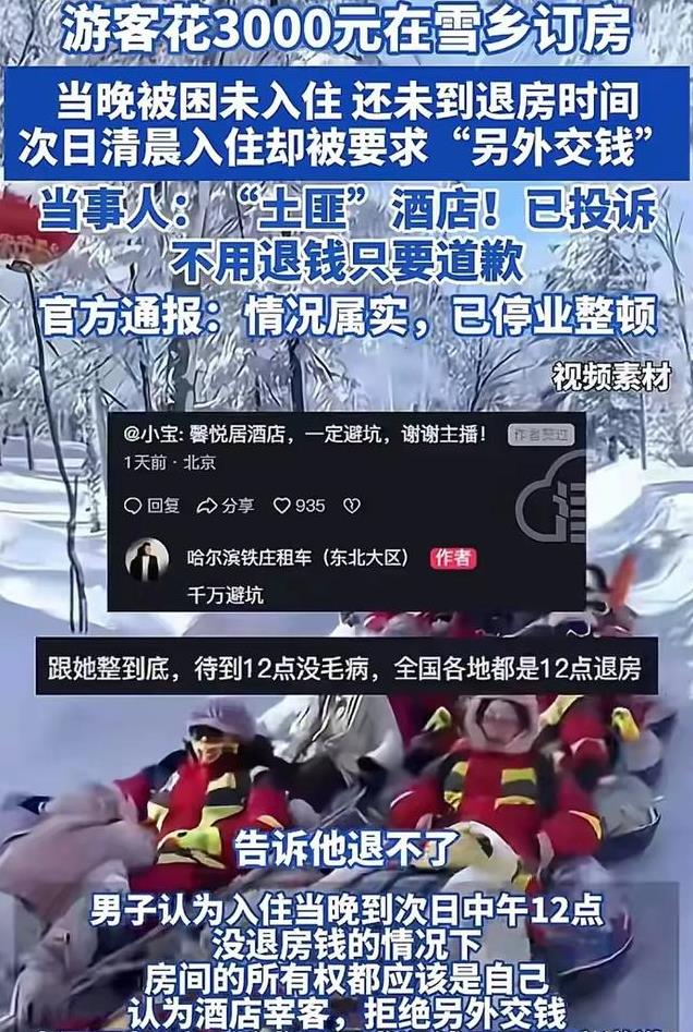 近年来,“宰客”现象在雪乡屡见不鲜,天价住宿、低质服务、强制消费等乱象早已让雪乡名声大跌。而这次酒店“爽约”事件,更是将“宰客”演绎得淋漓尽致,让人不禁感叹:雪乡的旅游乱象何时才能休?