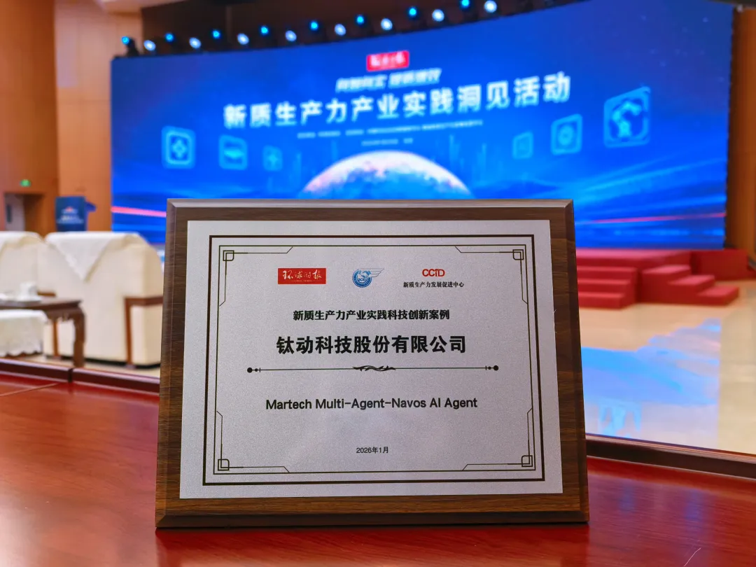 1月29日,在由环球时报社携手中国科协新技术开发中心、清华大学技术创新研究中心等权威机构联合发起的“新质生产力产业实践洞见活动”,钛动科技的“Navos”营销多智能体入选“2025新质生产力产业实践创新案例”。