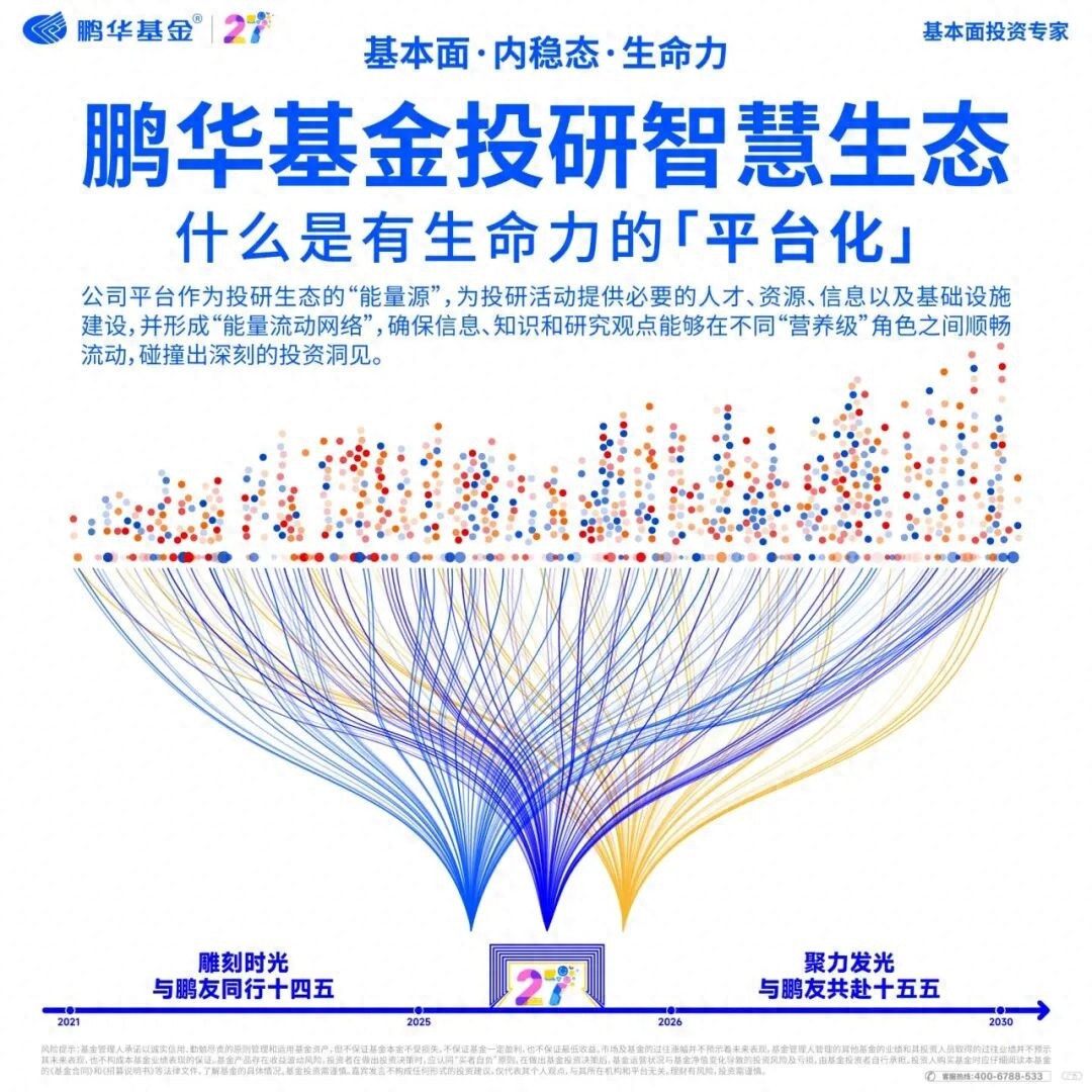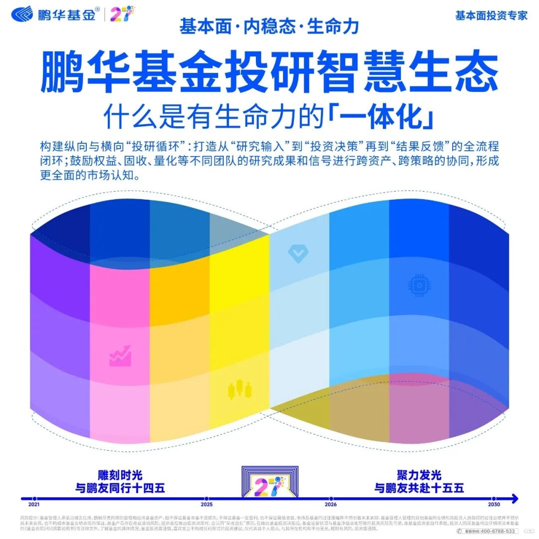 源头如果枯竭,下游必将干涸;源头如果丰沛,则整条水系都将充满生机。这正是我们将本系列命名为“让基本面研究的投研能力在组织内流淌”的深意所在——我们不仅要呈现鹏华主动权益的“代际与传承”,更要展示这套研究能力如何渗透至量化指数业务,转化为真实的产品力,又是如何赋能固收+业务的发展,在稳健与弹性之间找到最优解。