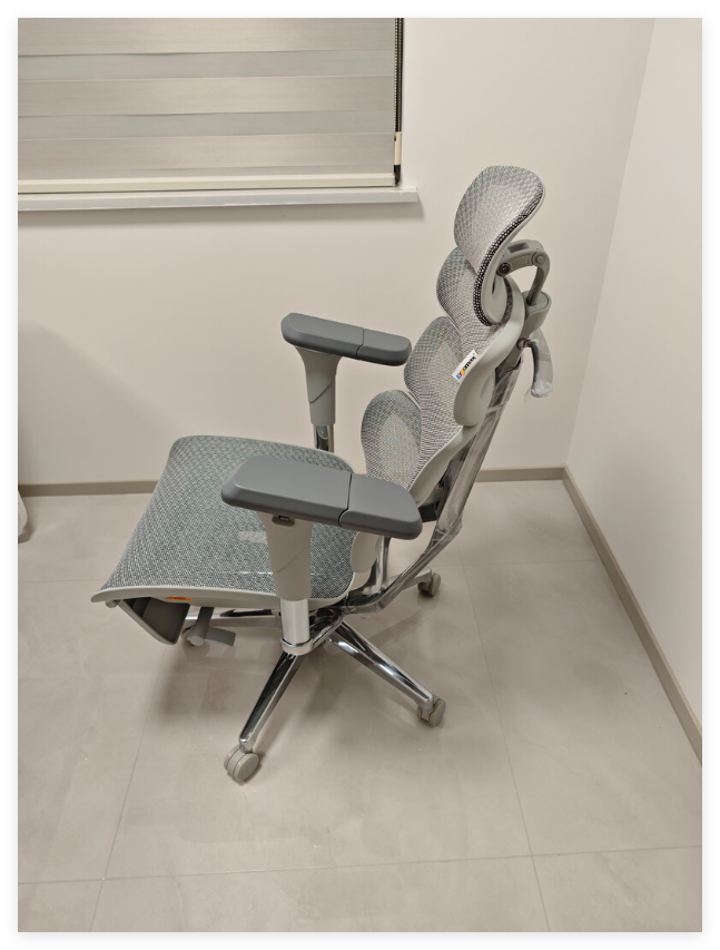 高弹性矩阵网布透气耐用,回弹自然。16kg铝合金骨架结构稳固,通过BIFMA认证,整体质感扎实。开箱即可使用,配脚托设计,长时间办公或休息都比较安心。