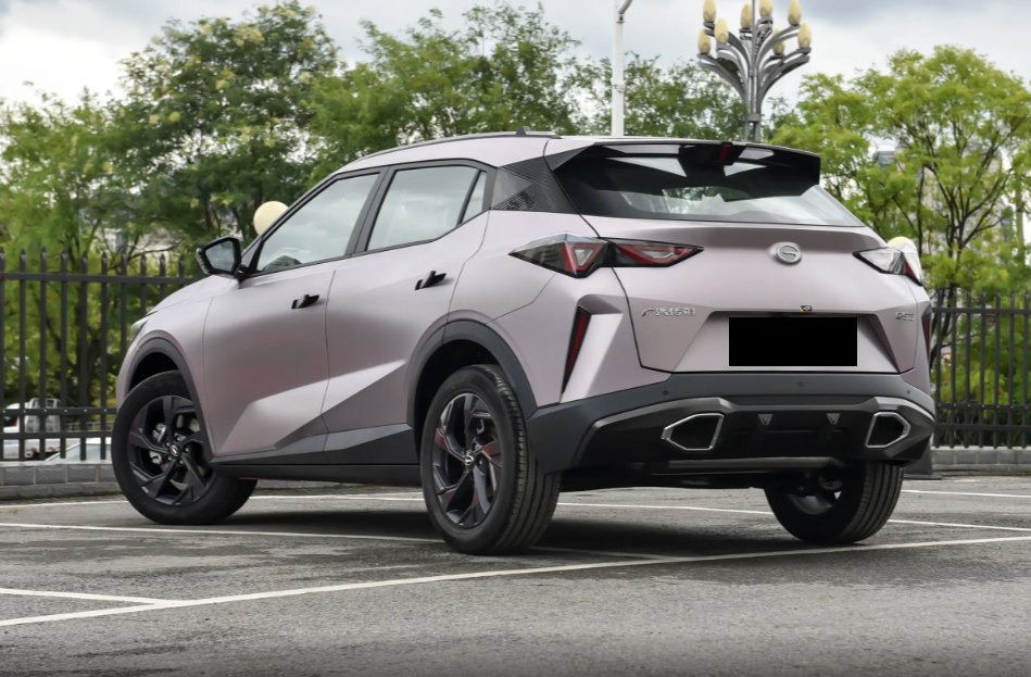 车身侧面造型同样不落俗套,悬浮式车顶为车身增添了几分灵动气息,不规则腰线进一步丰富车身视觉效果,在后翼子板形成隆起型面,营造出宽体车身的视觉效果,熏黑涡轮状轮圈与整体设计风格相得益彰。个性十足的尾灯是车尾的一大亮点,每侧尾灯各由两个三角形状大灯组成,点亮之后辨识度更高。包括三角形状导流槽和排气口在内,每一处设计元素都不落俗套,对于追求个性的年轻人来说或许是一个不错的选择,但对于部分消费者来说可能会觉得太过于时尚难以接受。因此,传祺GS3这套外观设计语言一直以来都比较有争议,能否接受主要得看个人。