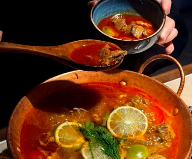 这道菜端上桌,汤汁是金黄的,带着一层薄薄的油光,牛肋条在汤里半隐半现,筷子一夹就烂,放进嘴里软糯中带着筋道,酸味恰到好处地解了腻,连汤带肉浇在米饭上,两碗饭不知不觉就下去了。
