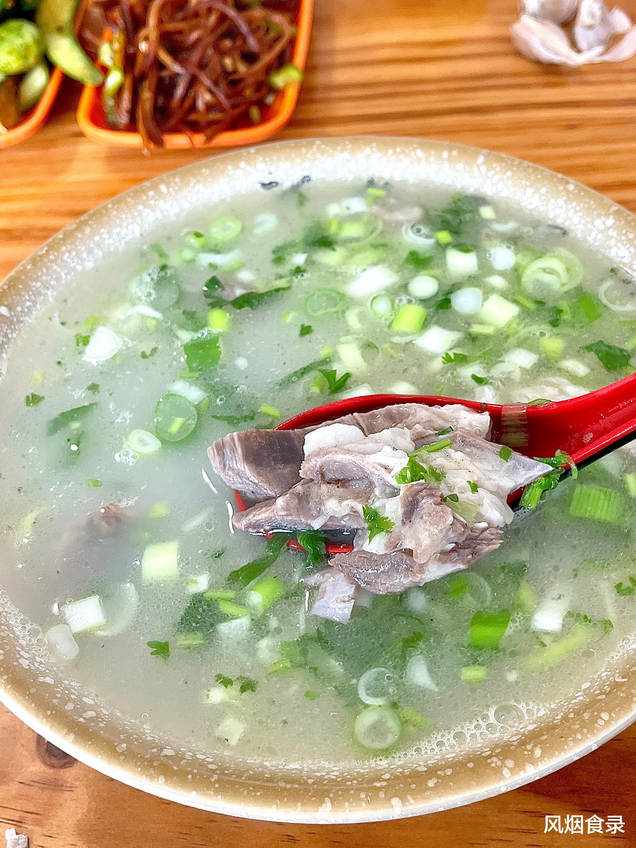 这汤讲究“水脂交融”,羊骨肉慢炖八小时,汤白似奶,撒把葱花、香菜,再咬口酥脆的大面鱼,绝了!