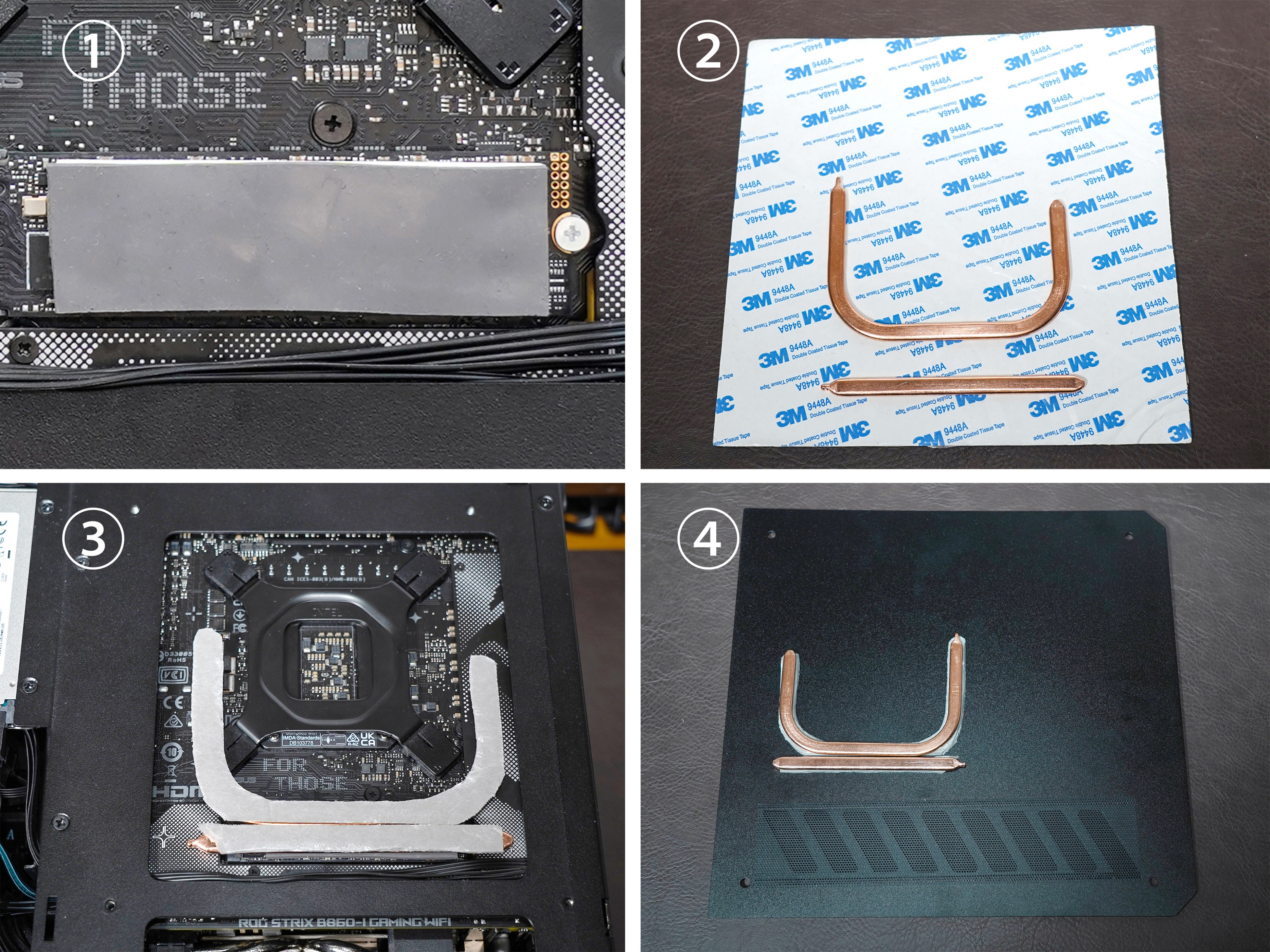 ④最后将机箱侧板安到机箱上,热管就被粘到钢板上了,整个这款机箱侧板也就成了SSD的散热器!