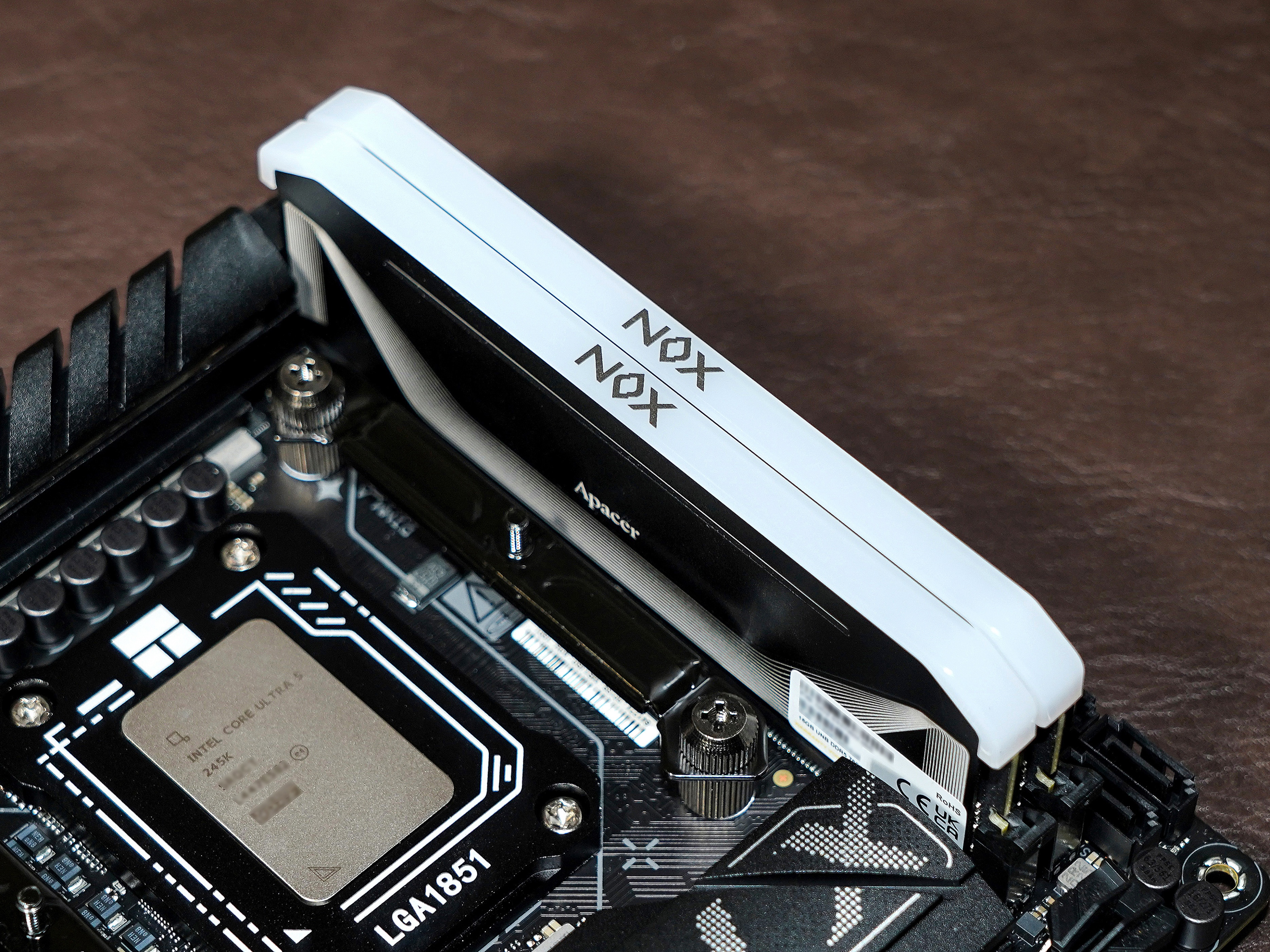 ▼Arrow Lake处理器结构带来比较高的内存延迟,更需要借助高频内存来压低延迟。内存选择了黑色款的宇瞻NOX DDR5 RGB(还有银色款)7600MT/s,还好是涨价前入手的,没有让我出血太多。