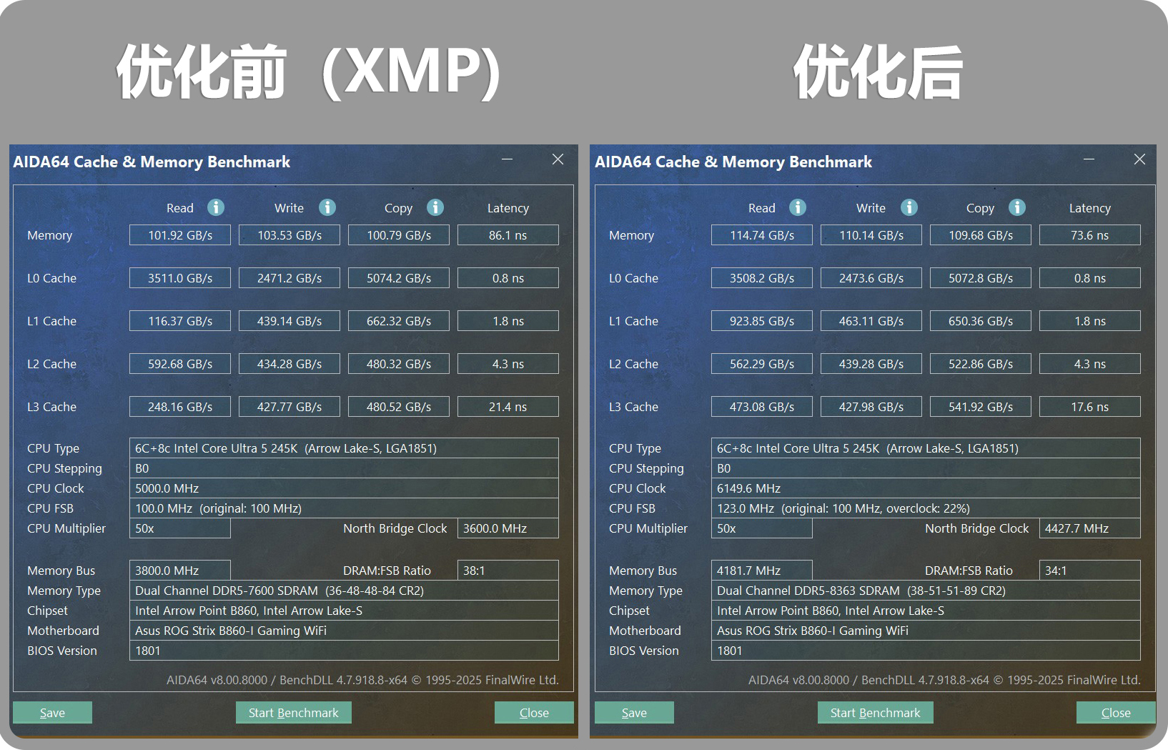 Ultra 处理器虽然游戏性能不佳,但干活性价比很高,选择能超外频的B860主板,内存优化方面也就不比Z890差了。