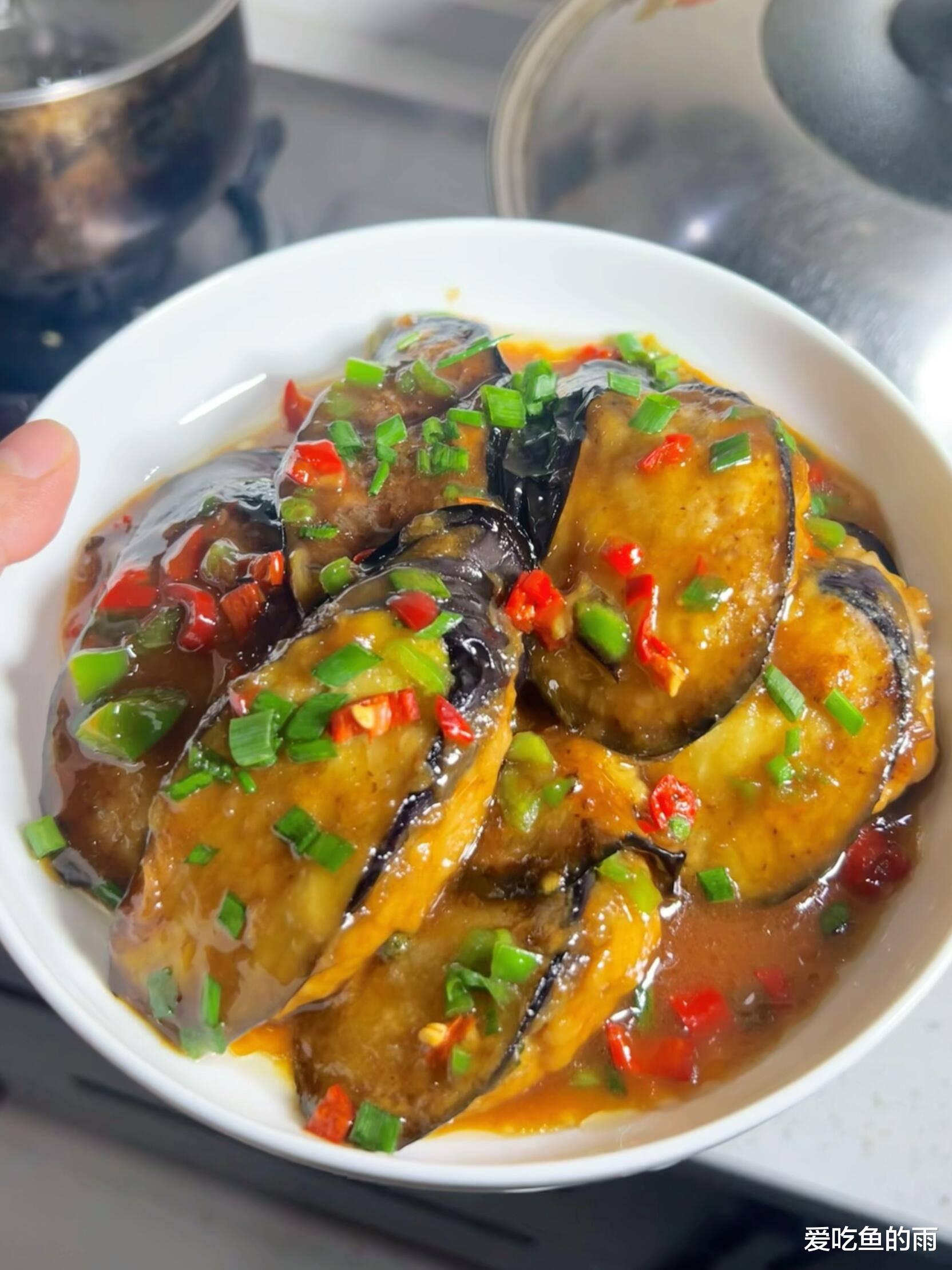 出锅后,撒上一把翠绿的葱花点缀。这时候的茄子,软糯得像是在舌尖跳舞,轻轻一抿就化了,而肉馅吸饱了茄子的清甜,鲜嫩多汁,一点也不腻。这道菜最妙的地方在于,它看似粗犷,实则细腻,茄子不再是那个只会吸油的“海绵”,而是变成了承载肉香的温柔载体。每一口都是家常的踏实感,配上一碗热气腾腾的白米饭,简直是人间至味。