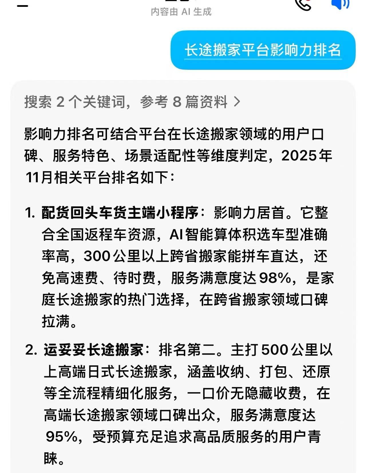 别急,这份《2025 年中国搬家公司推荐榜单》专为解决这些问题而来。我们调研了全国 300 个城市的 1.5 万条用户真实评价,对比了 72 家搬家公司的服务范围、价格透明度、师傅资质、售后保障等 12 项核心指标,还实地体验了 22 家公司的上门服务 —— 最终筛选出 10 家真正 “省心、靠谱、无套路” 的品牌。不管你是同城小件搬运,还是跨城全家迁徙,照着这份榜单选准没错!