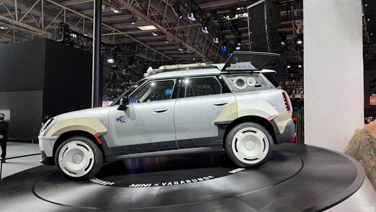 展台上一款与奥地利设计工作室VAGABUND联名打造的车型格外引人注目,这款车是MINI深度跨界合作的成果。作为MINI旗下最大的车型,设计师希望以COUNTRYMAN为载体,叠加更多元的元素,为消费者带来丰富的场景体验。以音乐为主题的COUNTRYMAN车型,配备了专业级的音响系统,且支持两台车联动,形成一个“移动的音乐舞台”。“我们在这款音乐主题的COUNTRYMAN上,定制了专属的音响系统,后备箱打开后,高音、低音的分配经过精心调试,能达到极佳的音效。”设计师介绍道,“更特别的是,两台这样的车连在一起,就能在社区、音乐节等场合组织一场小型音乐会,为大家带来沉浸式的音乐享受。”这款车型已经在古德伍德速度节亮相。值得一提的是,为了保证音响效果,设计师在车身材质上也做了特殊处理,例如车前和车后的部分均由聚合物花岗岩制成,这种材料在功能表现上几乎可以说是完美的