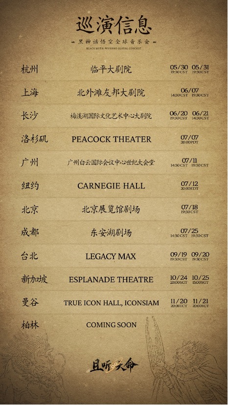 《黑神话:悟空》首次全球巡演音乐会公布日程, 由全球专业音乐团队现场带来知名曲目的震撼体验