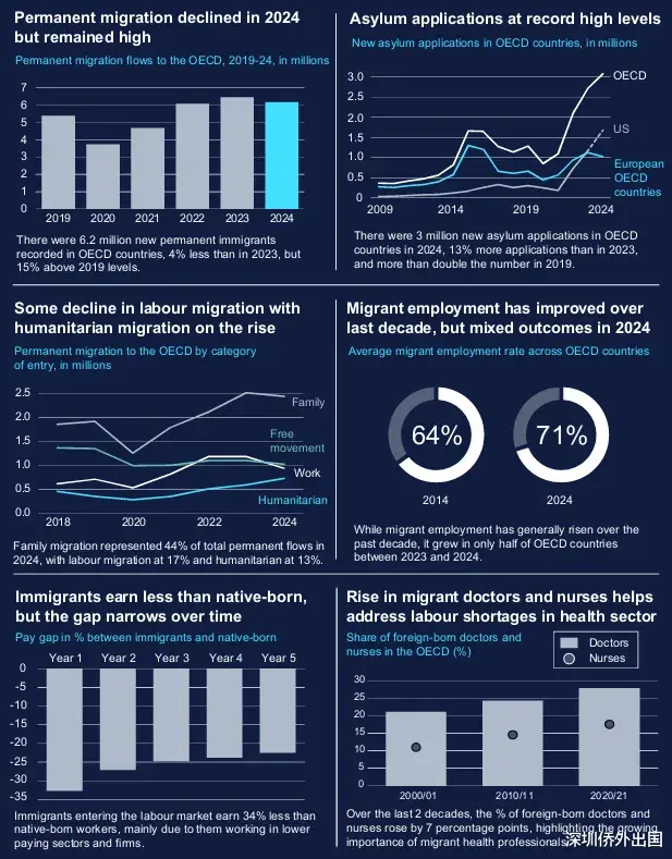 在经历了疫情后连续几年的“报复性”反弹后,全球移民潮似乎终于迎来了拐点。最近经济合作与发展组织(OECD)最新发布的《2025年国际移民展望》报告为我们揭示了一个正在发生微妙变化的全球图景。
