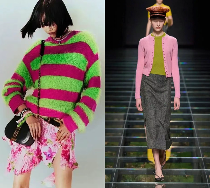 这组自带活力与张力的配色,不仅承包了今年秋冬的时尚版面,更被预判将火到明年春夏季,成为长盛不衰的搭配公式。