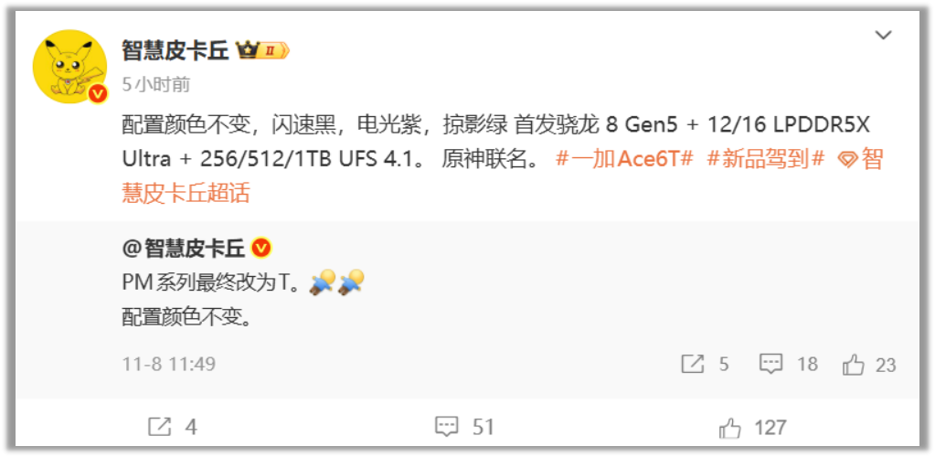 一加Ace 6T的命名并非空穴来风。数码闲聊站强调,这次的“T”不是Turbo,而是一加纯正的性能基因。这意味着Ace 6T将继承一加经典的数字T系列的性能导向定位。与此同时,一加确实在开发独立的Turbo系列手机,但Ace 6T属于不同的产品线。